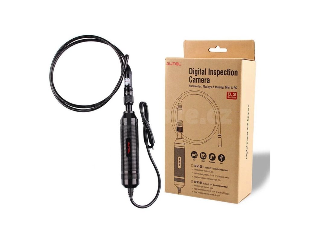 Autel MV105 je endoskopická kamera určená pro použití s vybranými diagnostikami Autel (například MK906BT nebo MK906P) nebo s počítačem. Endoskop je vybaven husím krkem a kabelem do USB portu. Součástí je příslušenství v podobě háku, zrcátka a magnetu.